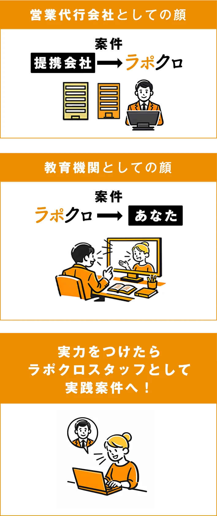 オンラインセールス代行が学べるのと同時に、